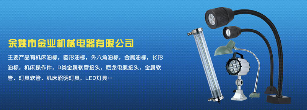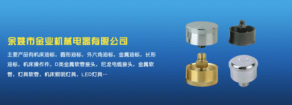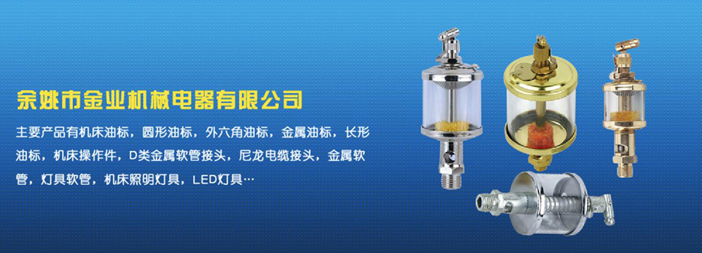 余姚市金業(yè)機械電器有限公司主要產(chǎn)品有機床油杯,圓形油標,外六角油標,金屬油標,長形油標,機床操作件,D類金屬軟管接頭,尼龍電纜接頭,金屬軟管,燈具軟管,機床照明燈具,LED燈具,DGT型線路軟管防護套,TL型鋼制電纜手軌,電纜尼龍拖鏈,可調塑鋼冷卻管等產(chǎn)品,規(guī)格齊全,全部自制。望國內(nèi)外客戶前來考察:共同發(fā)展…